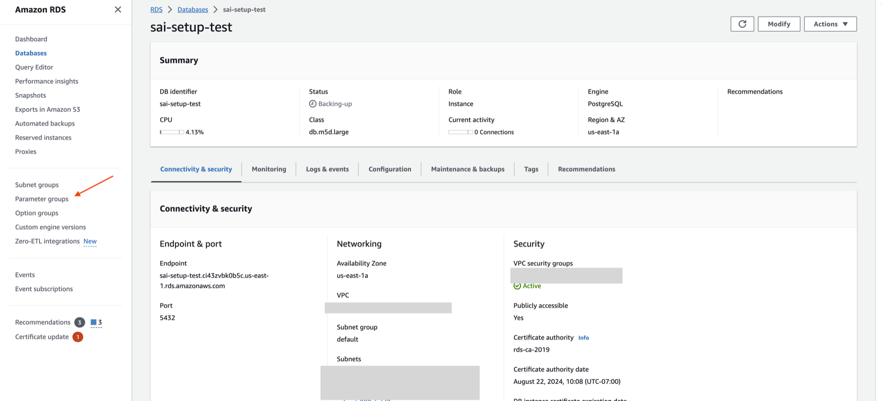 - Примените новую группу параметров к вашей базе данных RDS Postgres